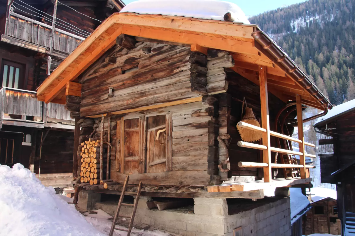Nur wenige Gehminuten von der Langlauf Loipe und nur 10 Minuten von der Lauchernalp Bergbahnen entfernt, ist dieser Spycher eines der letzten verbliebenden Exemplare seiner Art.